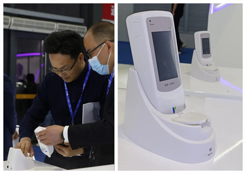 展位上,工作人員為海內外參展人員詳細講解,操作演示設備。新穎的外觀,科學的人機交互,吸引眾多觀眾駐足圍觀。